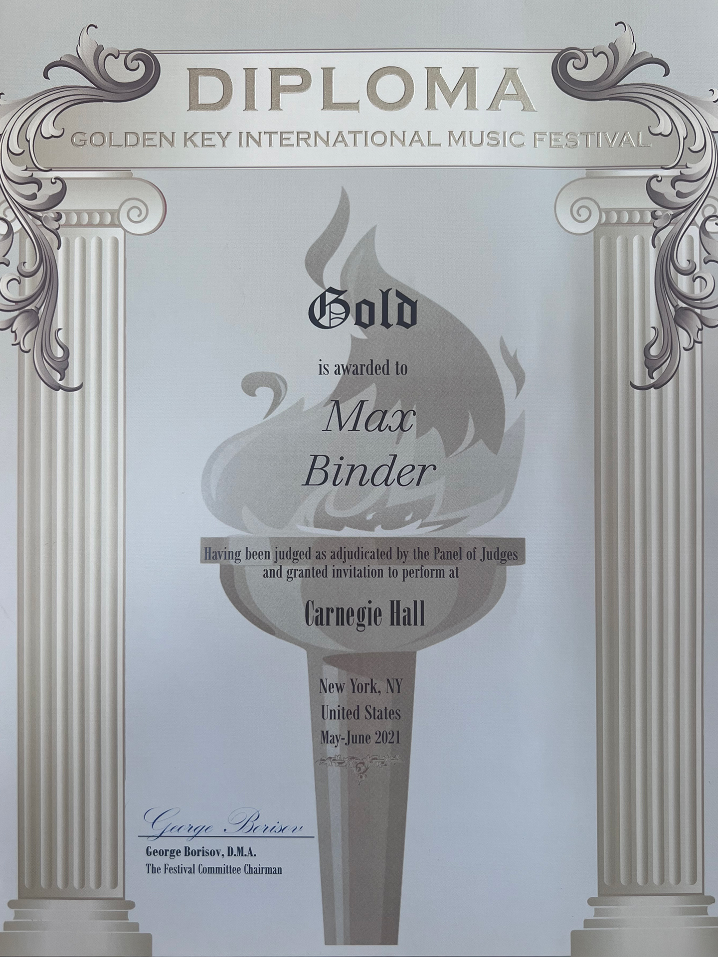 This was my longest-running music competition, as I performed there for many consecutive years. I won numerous silver and gold medals, one of the diplomas for which can be seen on this page. In summer 2024, I had the opportunity to compete and perform in the international chapter, performing in various historic music halls in Vienna.