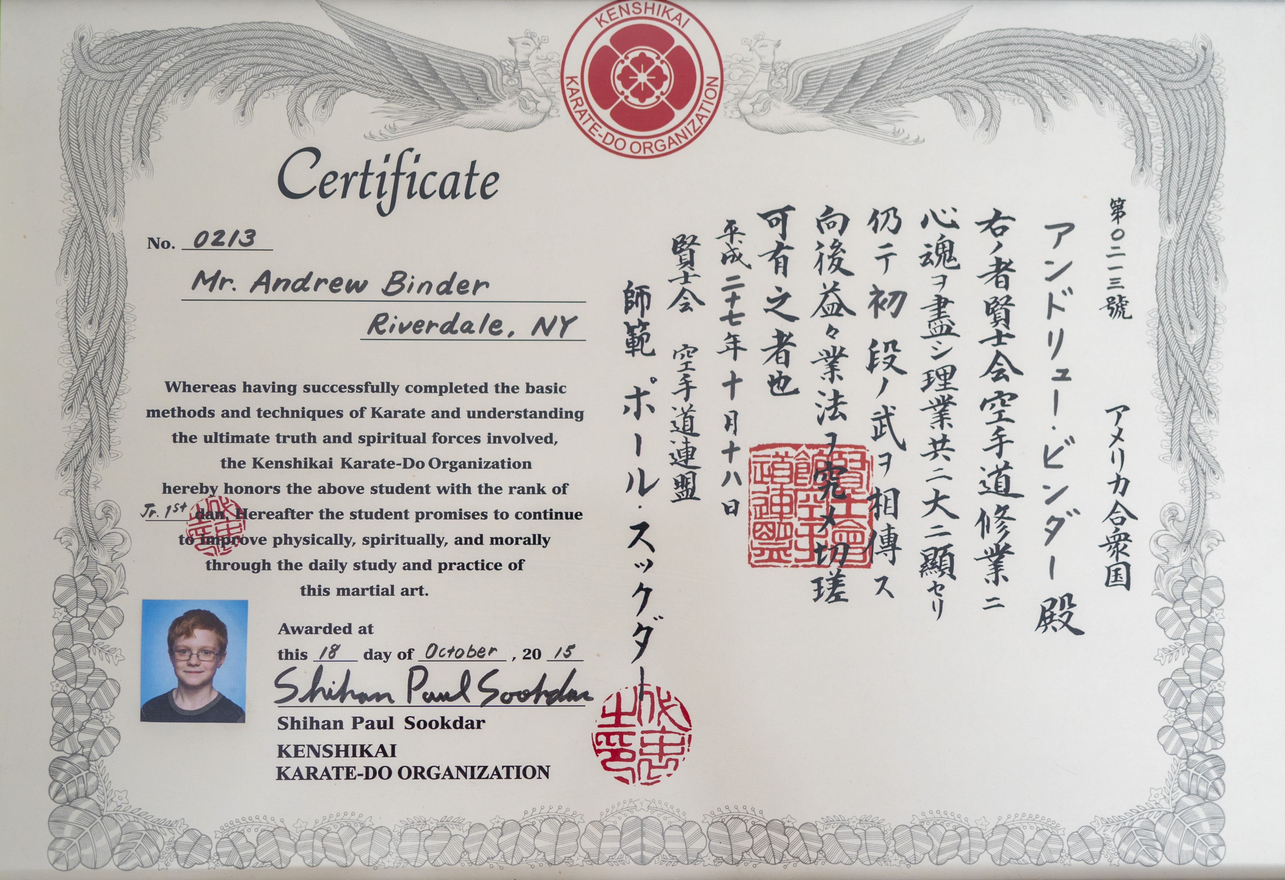 After moving to Riverdale and discovering a lot of programs here (such as the RRS theater program), my parents discovered Riverdale Kenshikai Karate and decided to enroll me there. Though I was initially reluctant to go to classes, they eventually grew on me and I have never stopped training there. I started when I was 4, and have been going ever since. Click the title to go to their homepage.